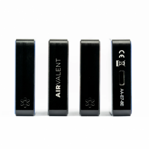 AIRVALENT measures relative humidity, temperature, and harmful CO2 levels indoors (with a Swiss technology CO2 sensor).