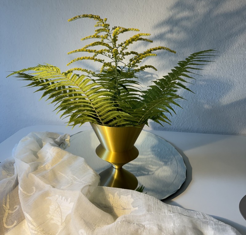 Inspired from the ancient latén cultur I had create a form of an flower vase wich is based on a mathematical ground of a new construction of elliptical shapes. You can receive on this way the file as slx. for printing with an 3D printer and maybe you can create a new variant of it byself under choosing a other material, a other dimension or a other printing speed.